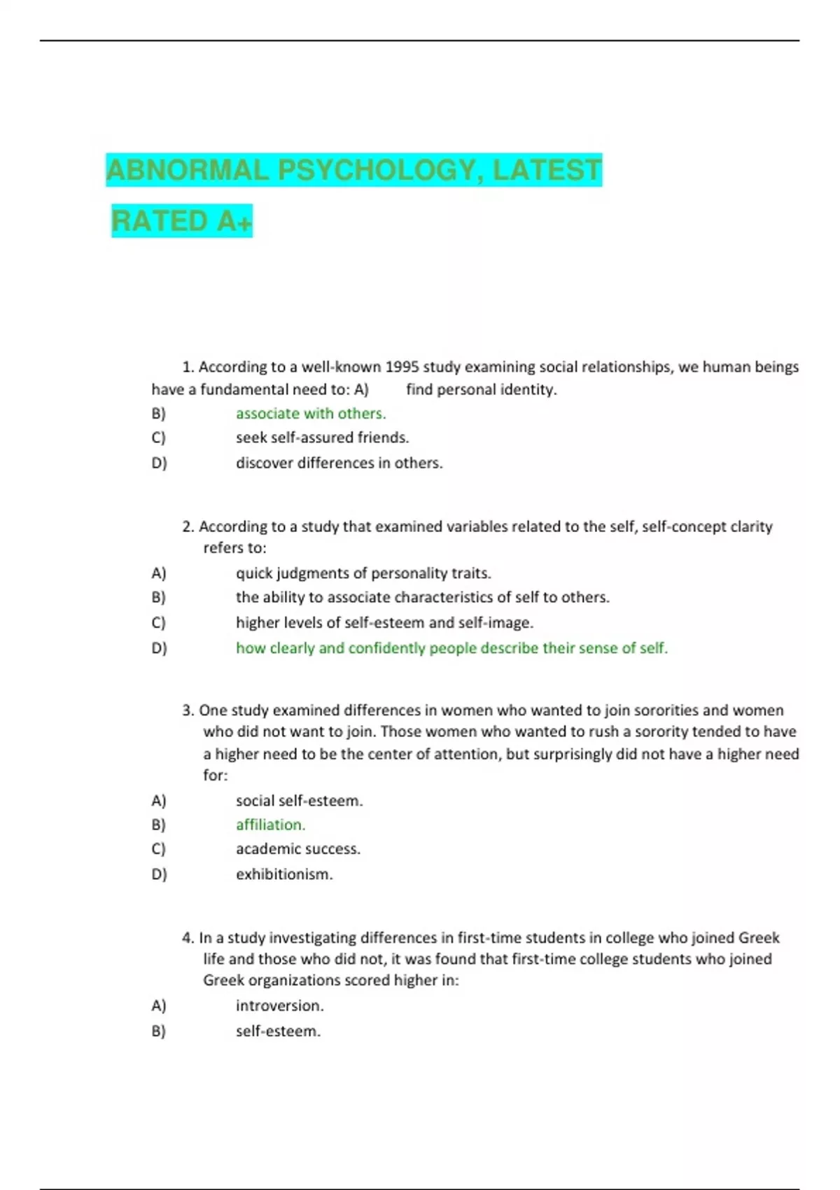 ABNORMAL PSYCHOLOGY, LATEST RATED A+