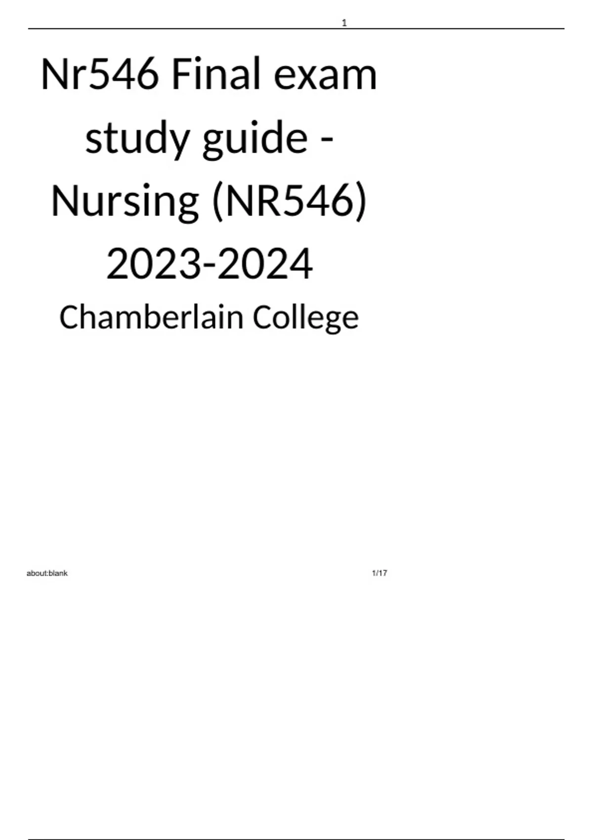 Nr546 Final exam study guide - Nursing (NR546) Chamberlain College