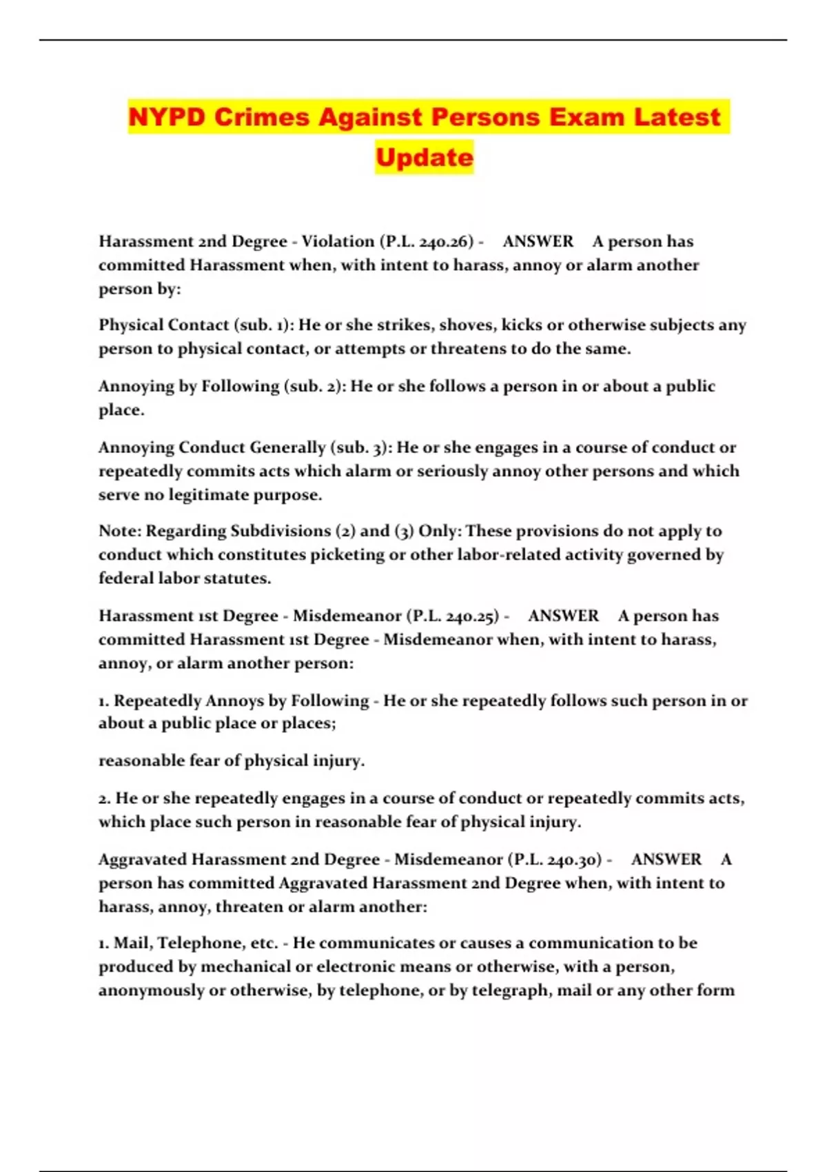 NYPD Crimes Against Persons Exam Latest Update...
