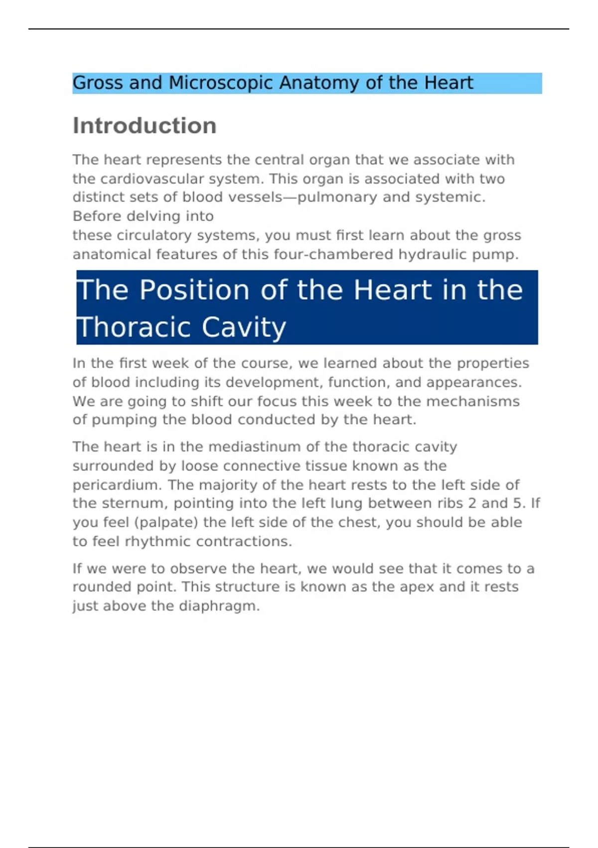 BIOS 255 Week 2 Concepts I The Cardiovascular System- Heart