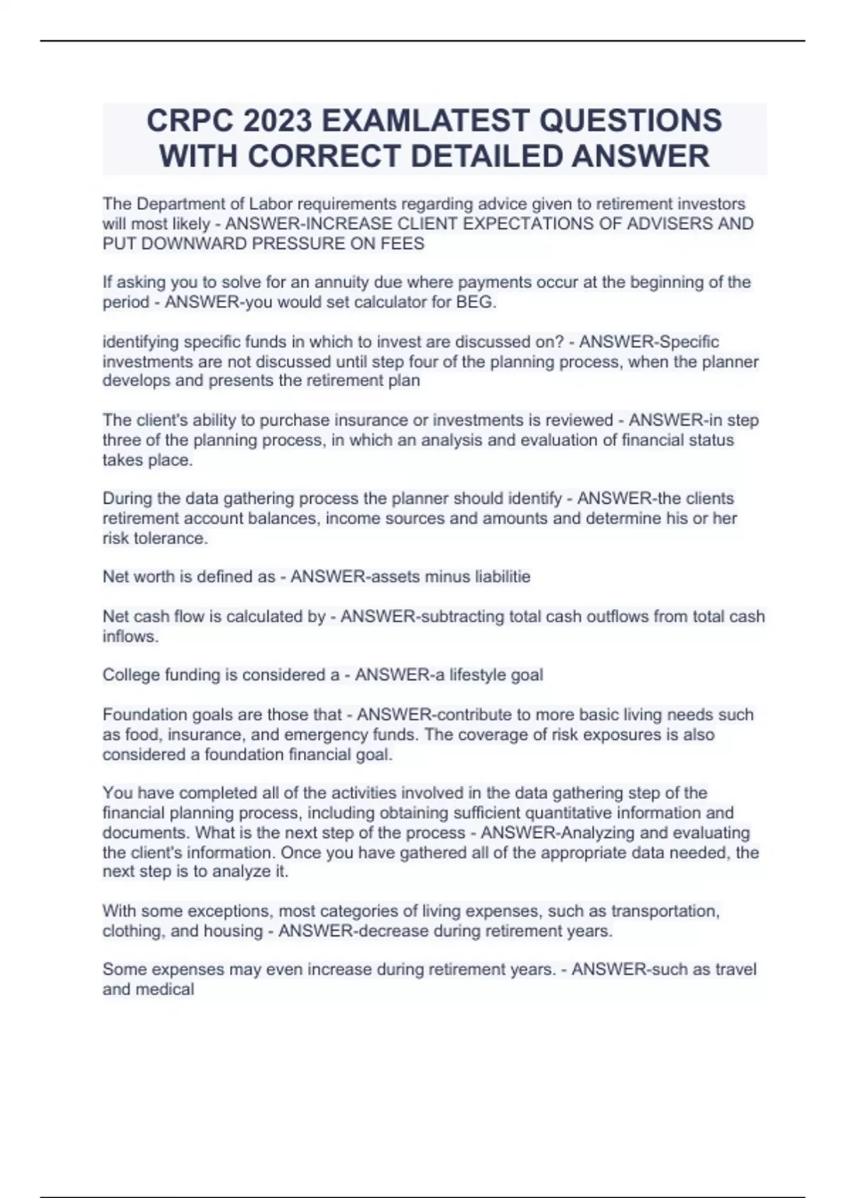 crpc 2023 examlatest questions with correct detail