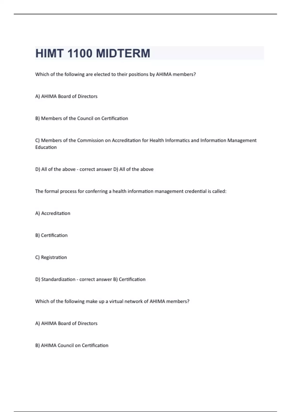 , C) AHIMA Communities of Practice