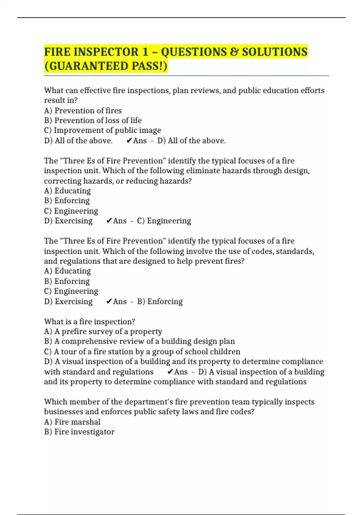 FIRE INSPECTOR 1 – QUESTIONS & SOLUTIONS (GUARANTEED PASS!)