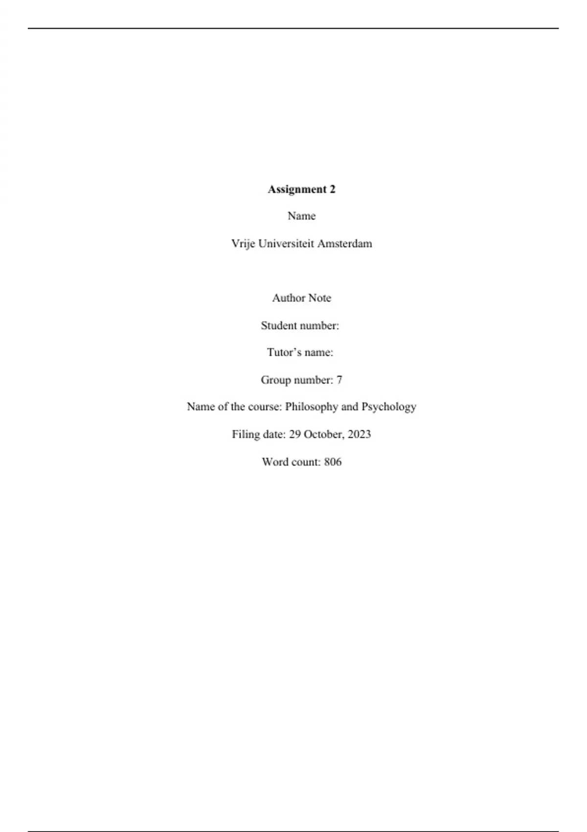 Philosophy&Psychology. Final Assignment II Free Will, GRADE 7