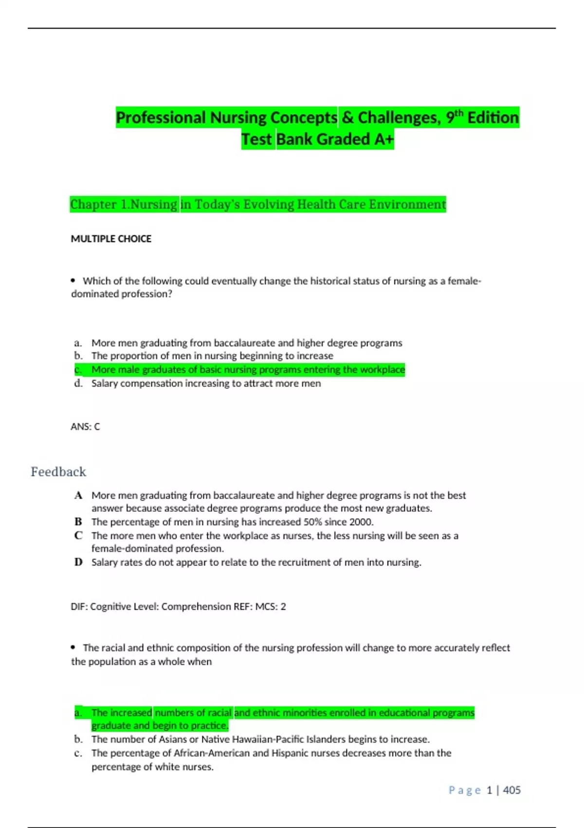 Professional Nursing Concepts & Challenges, 9th Edition Test Bank Graded A+.Professional Nursing Concepts & Challenges, 9th Edition Test Bank Graded A+.
