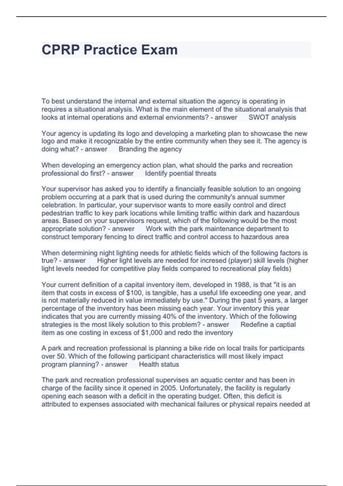 Exam of 5 pages for the course Cprp at Cprp (CPRP Practice Exam)