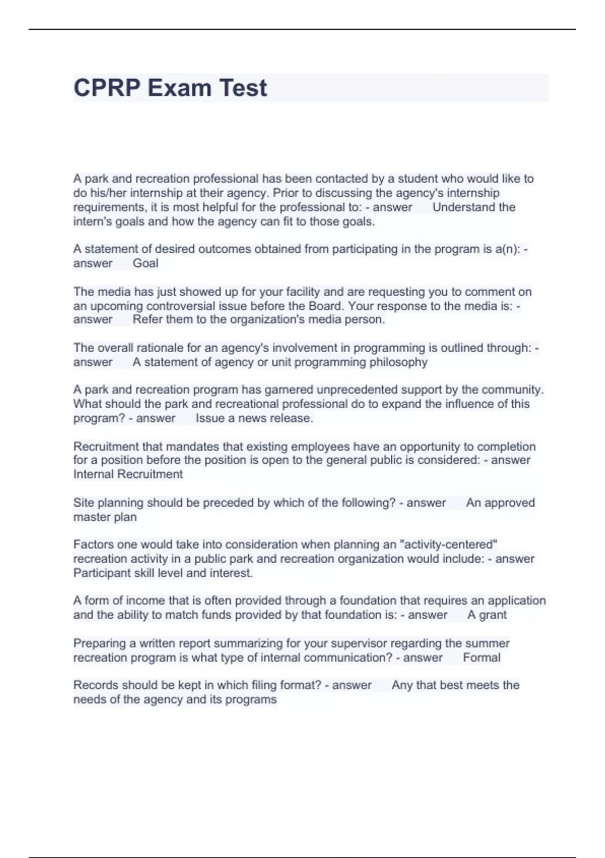 CPRP Exam Test Questions and Answers Graded A+