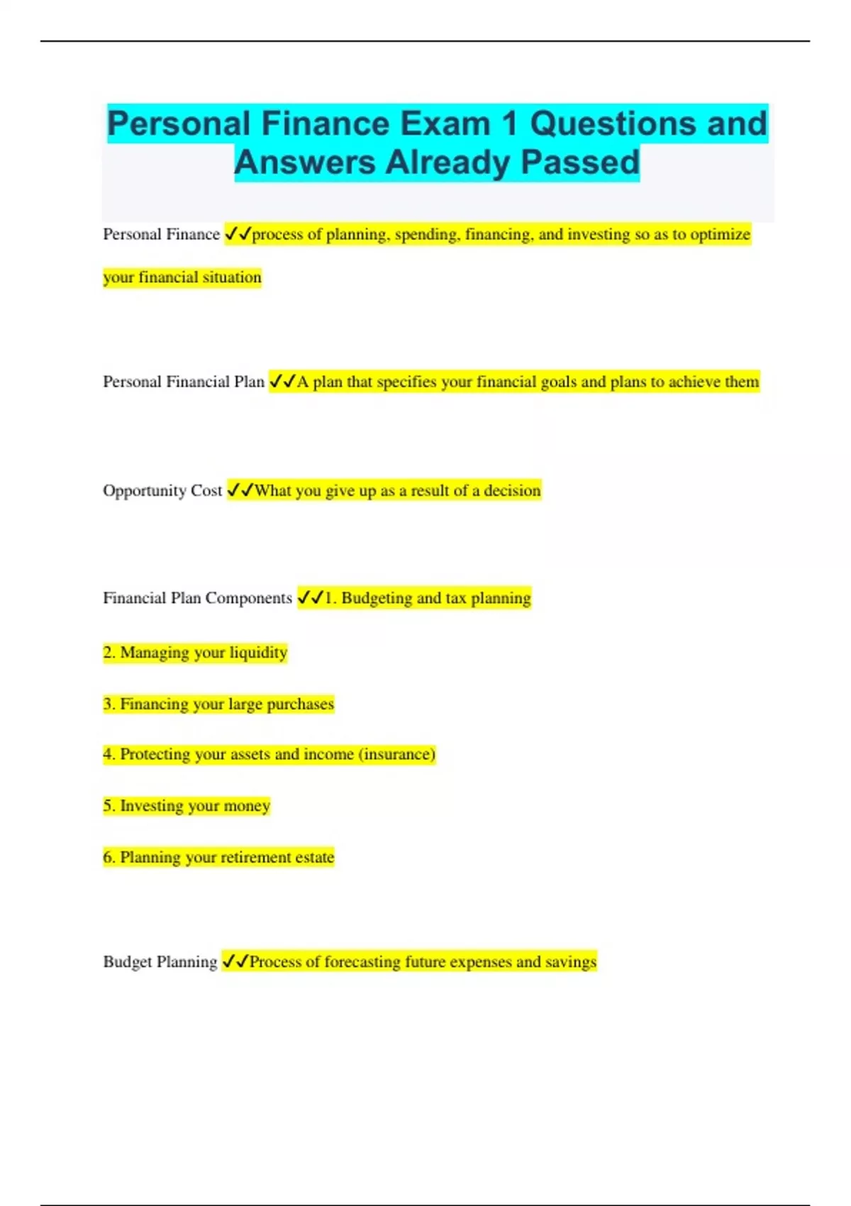 Personal Finance Exam 1 Questions and Answers Already Passed