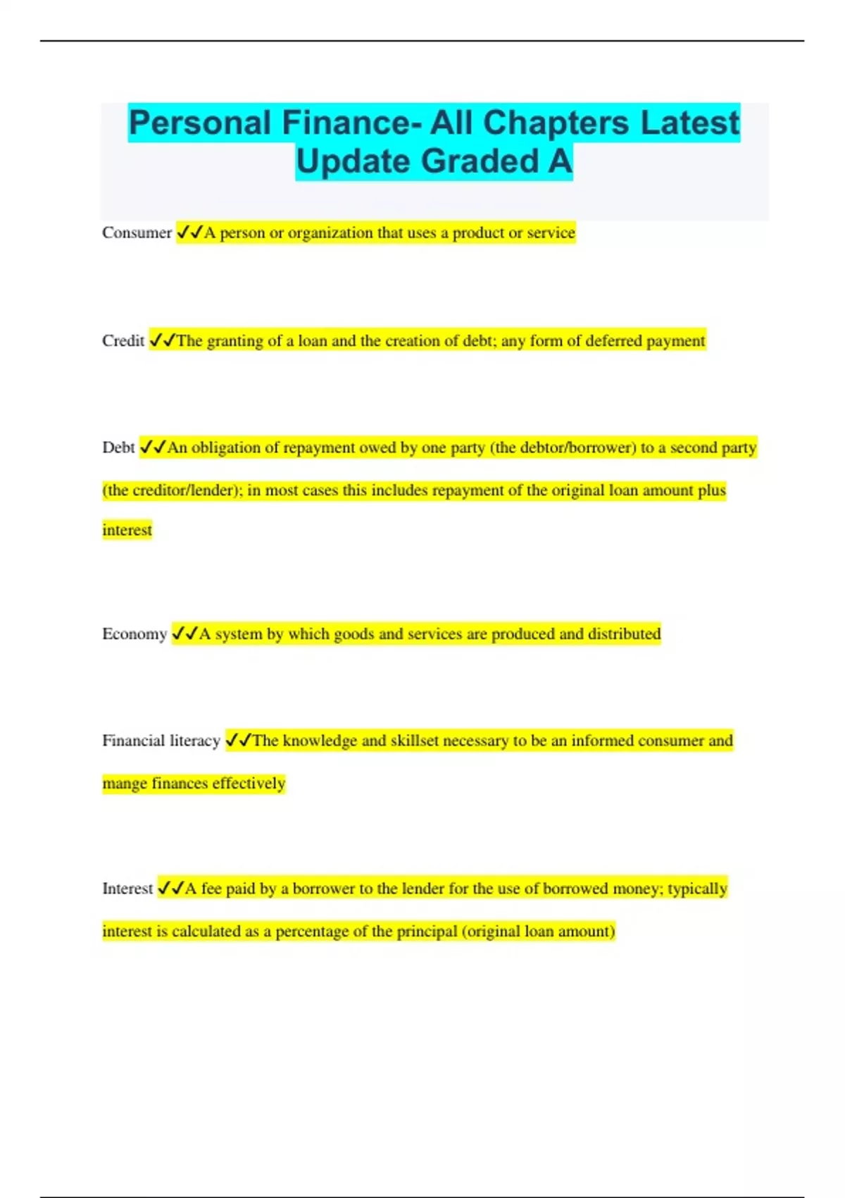 Personal Finance- All Chapters Latest Update Graded A