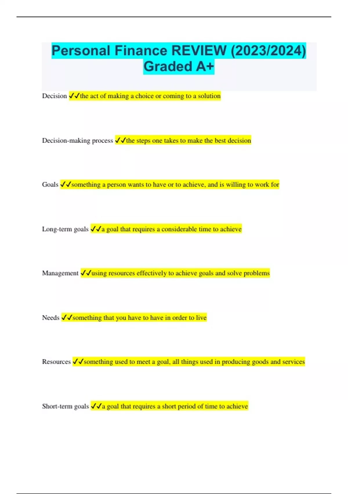 Personal Finance REVIEW (2023/2024) Graded A+