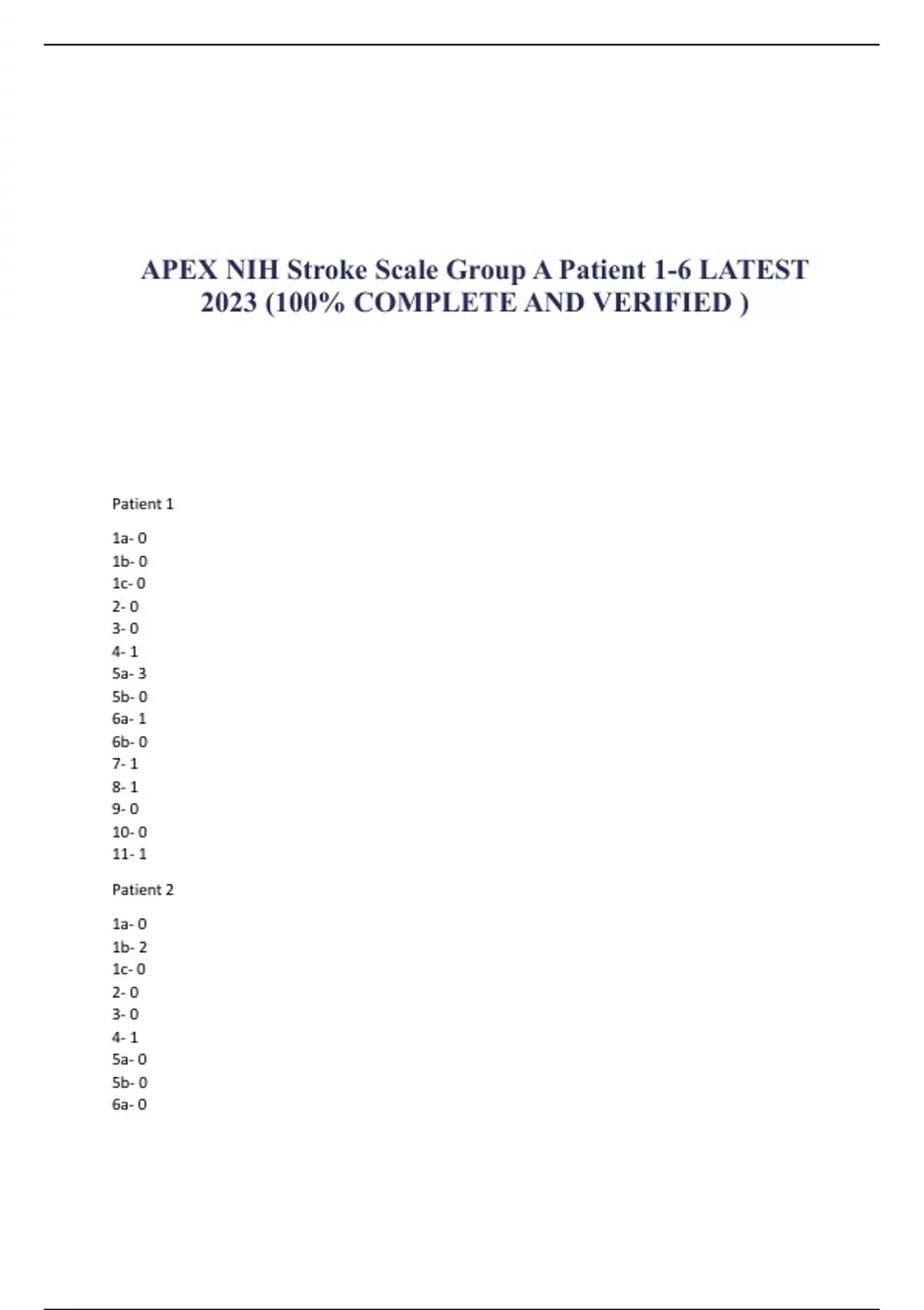APEX NIH Stroke Scale Group A Patient 1-6 LATEST 2023 (100% COMPLETE AND VERIFIED )