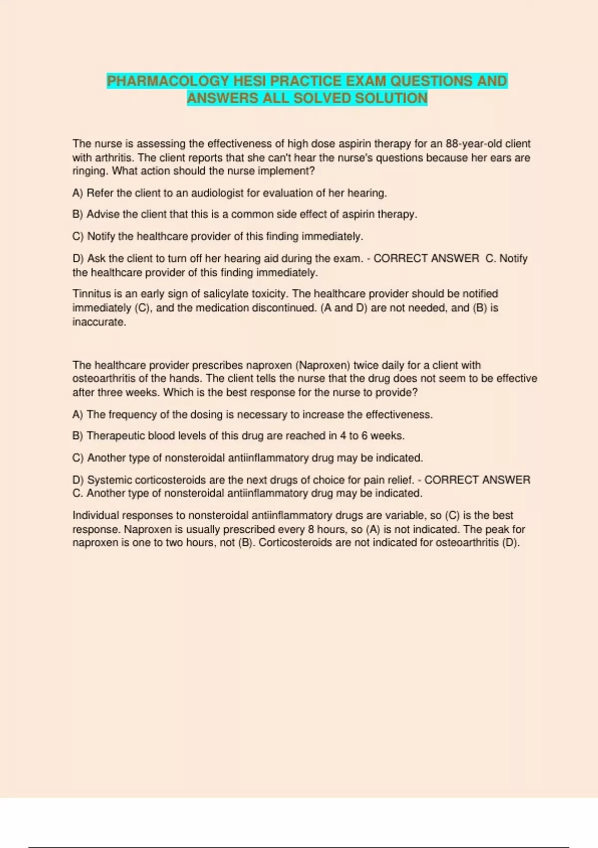 response. Naproxen is usually prescribed every 8 hours, so (A) is not indicated. The peak for