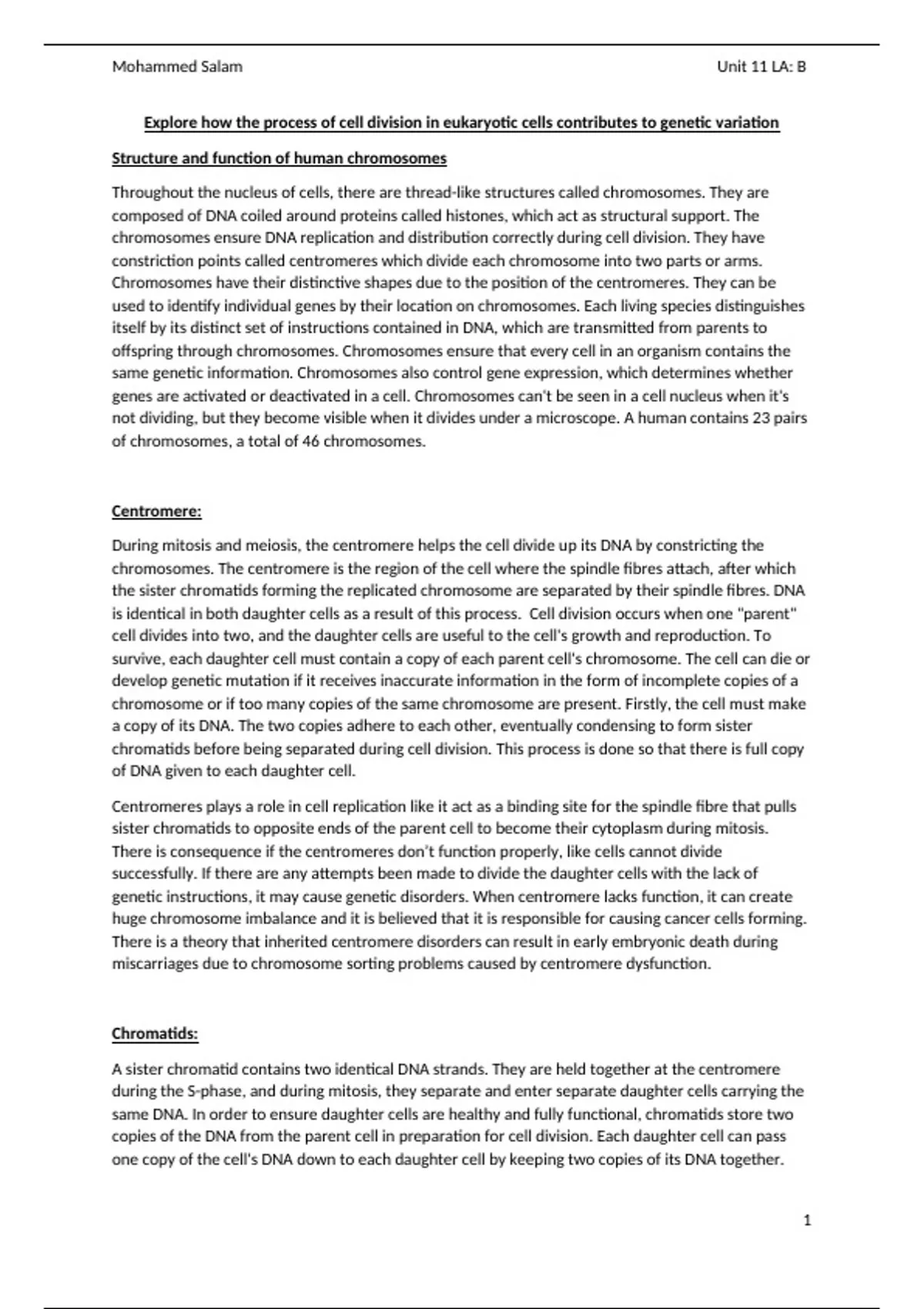 Explore how the process of cell division in eukaryotic cells contributes to genetic variation