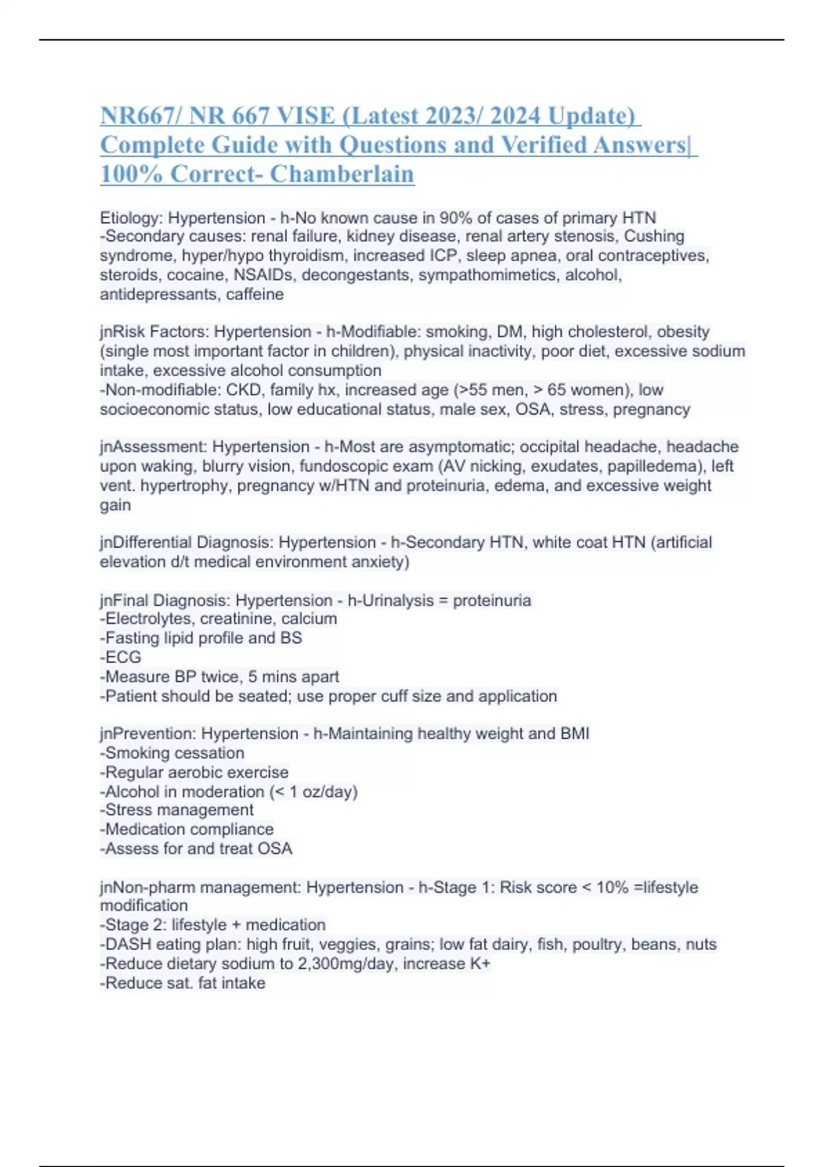 NR667/ NR 667 VISE (Latest 2023/ 2024 Update) Complete Guide with Questions and Verified Answers| 100% Correct- Chamberlain