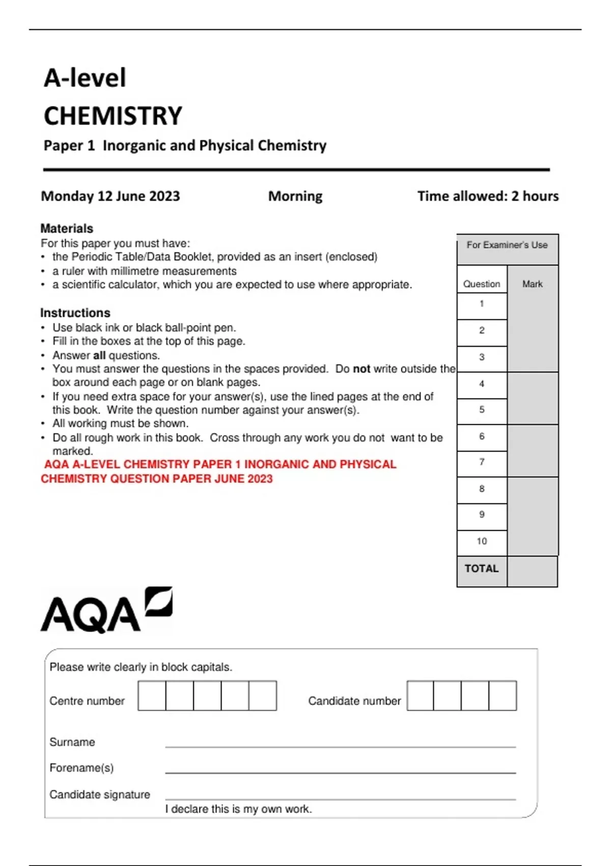 AQA A-LEVEL CHEMISTRY PAPER 1 INORGANIC AND PHYSICAL 7
