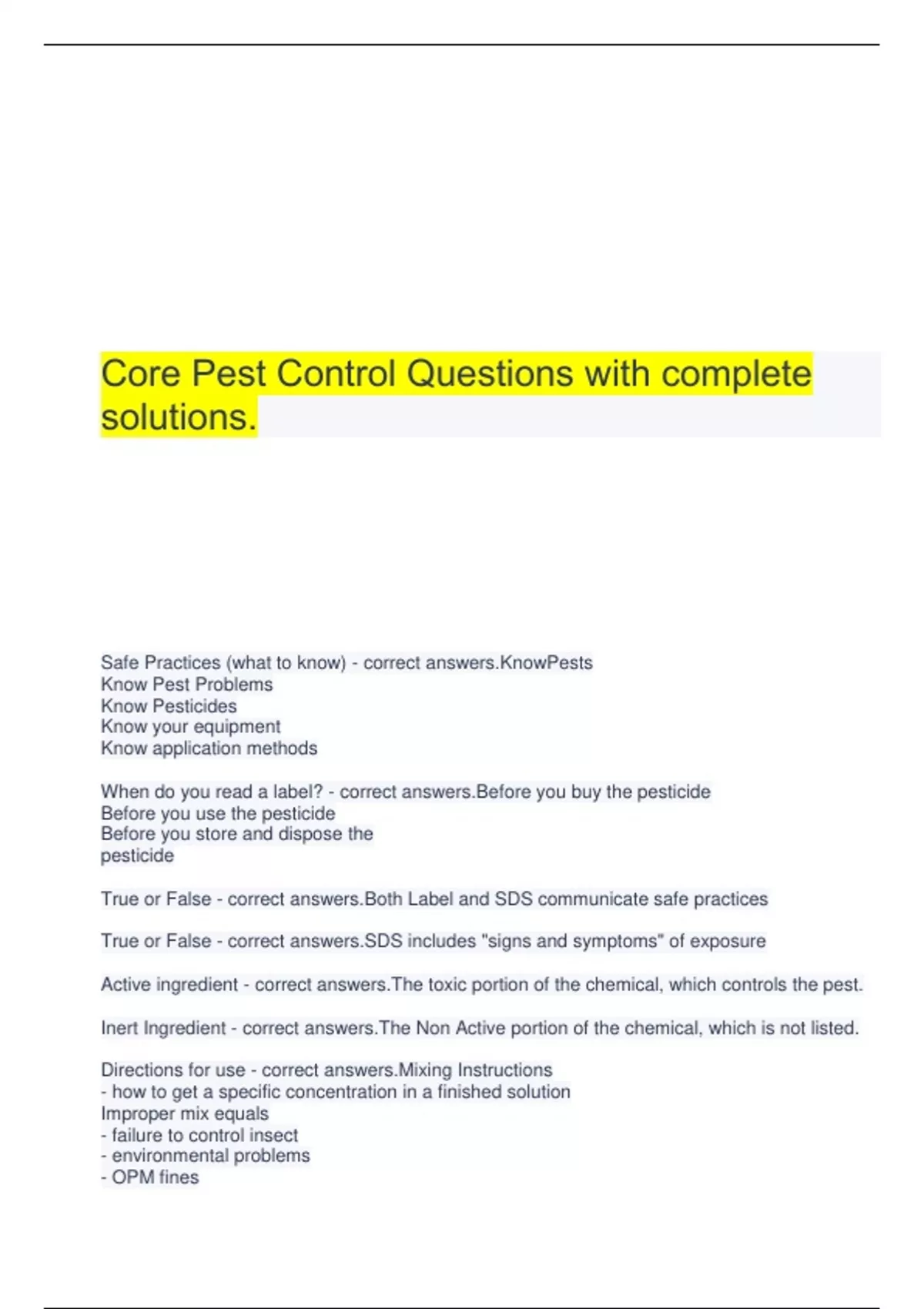 Core Pest Control Questions with complete solutions.