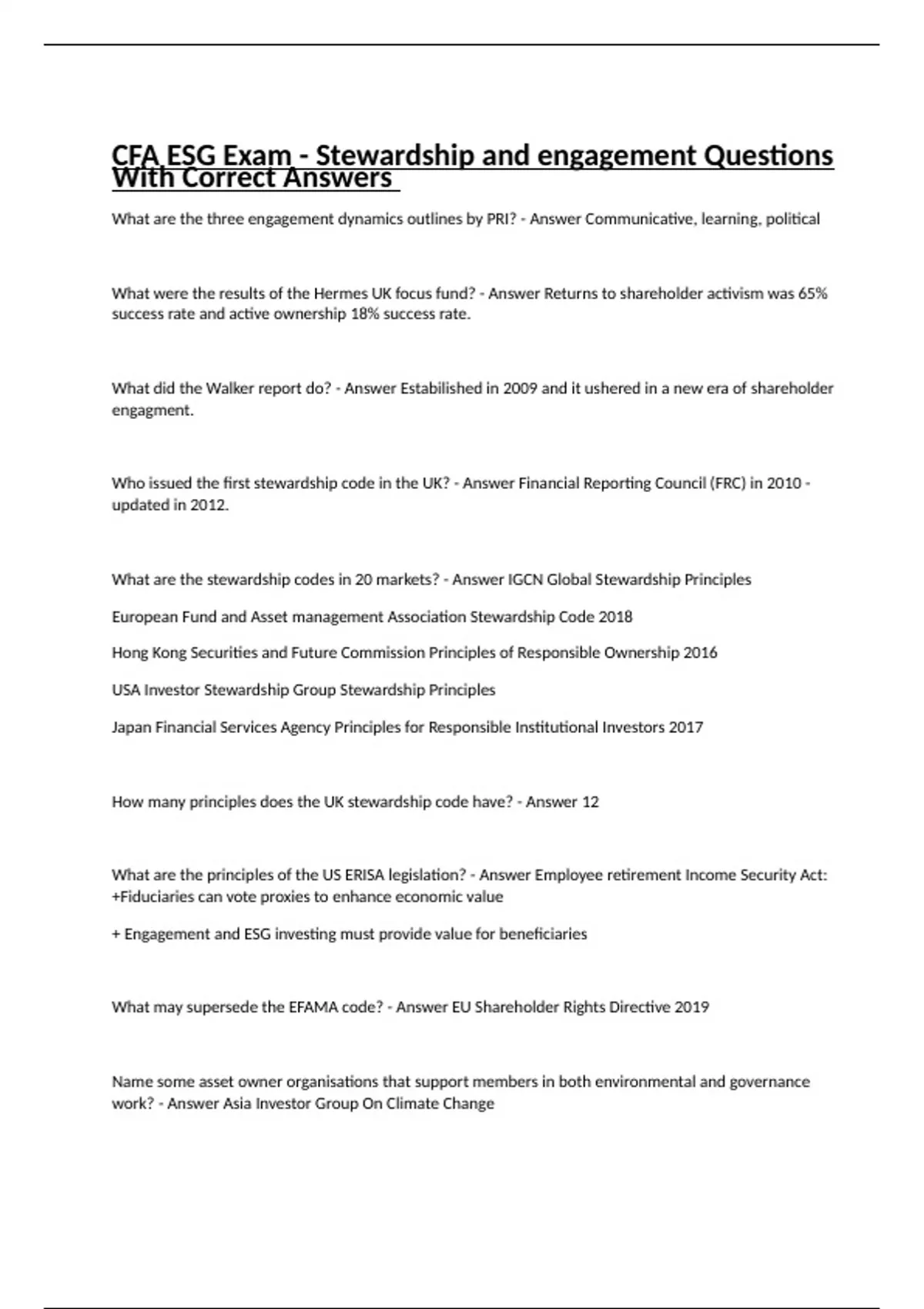CFA ESG Exam - Stewardship and engagement Questions With Correct Answers