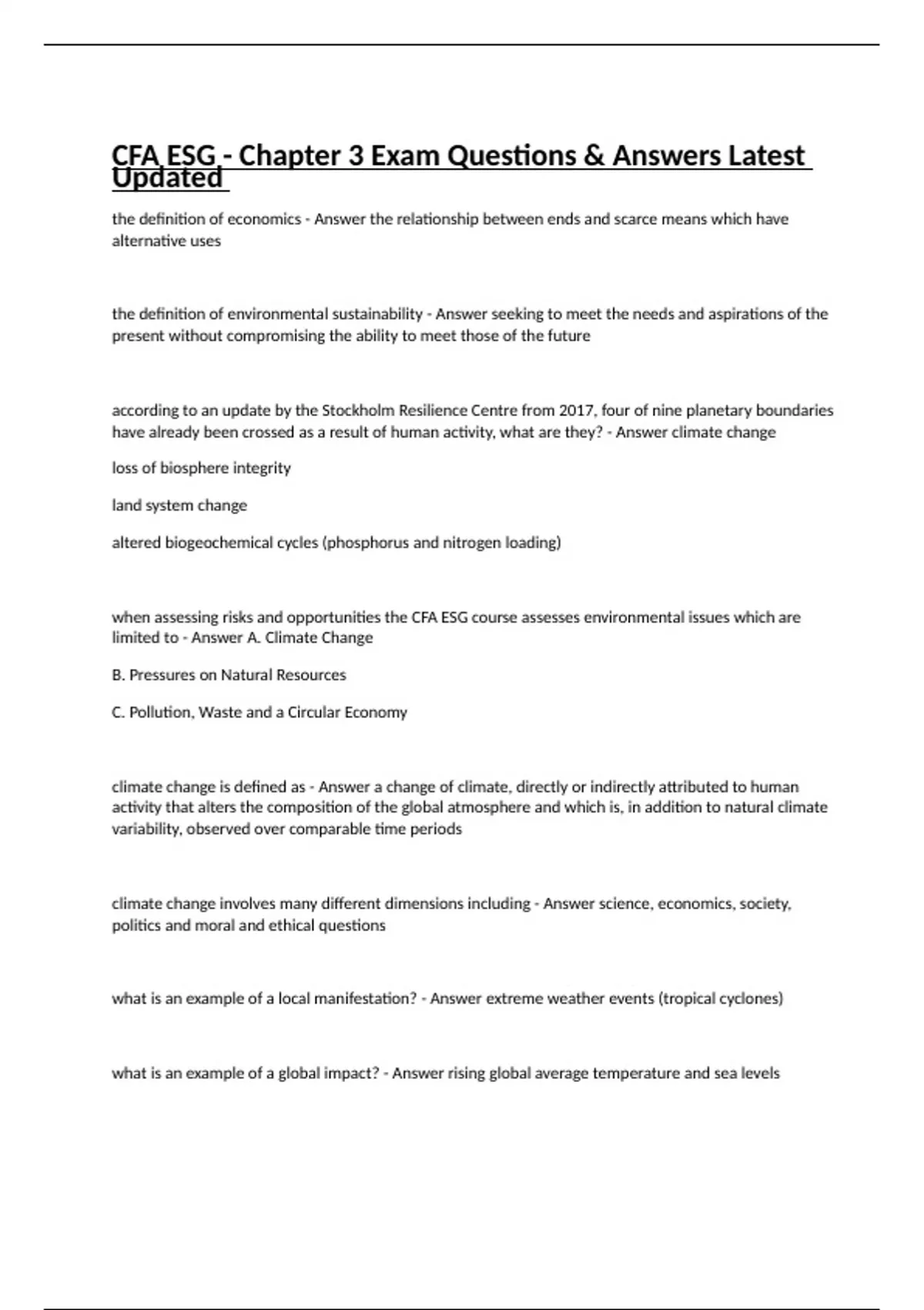 CFA ESG - Chapter 3 Exam Questions & Answers Latest Updated