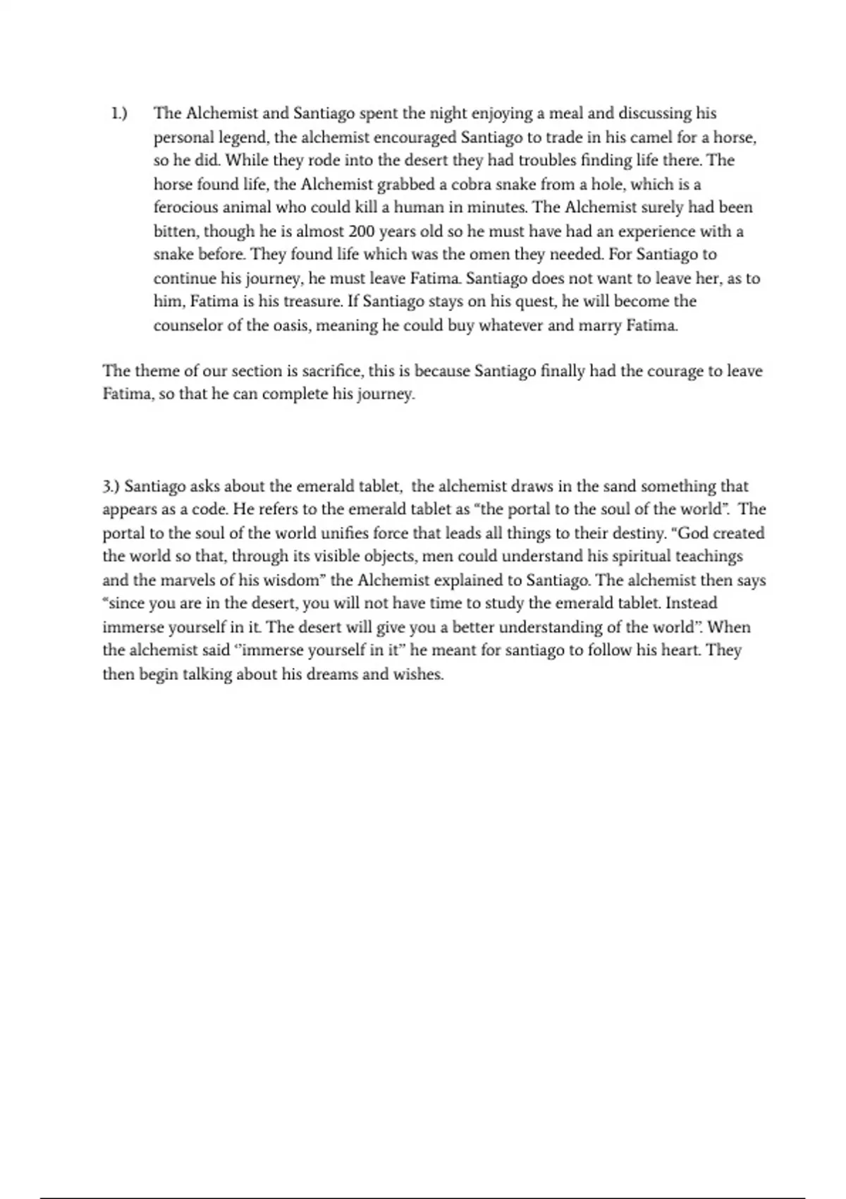 Summary of 1 pages for the course English at 9th Grade (The alchemist essay)