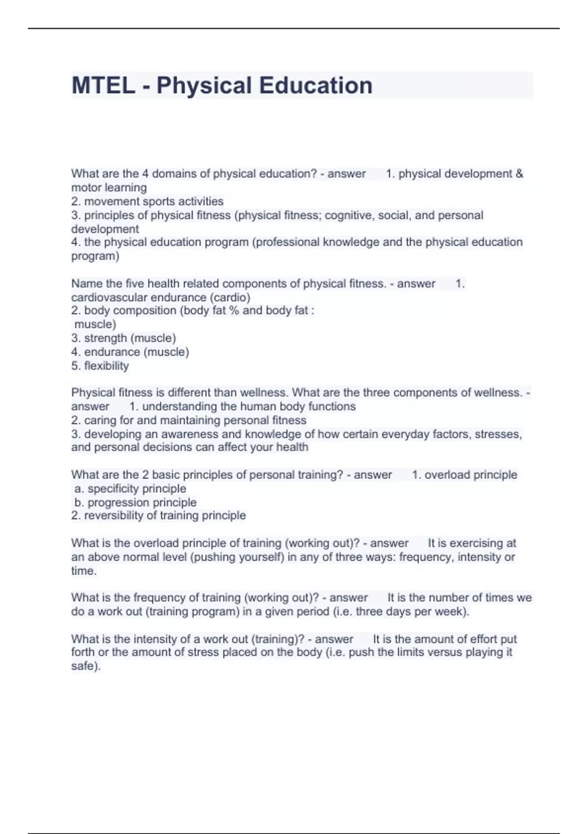 MTEL - Physical Education Questions with Correct Answers 2023