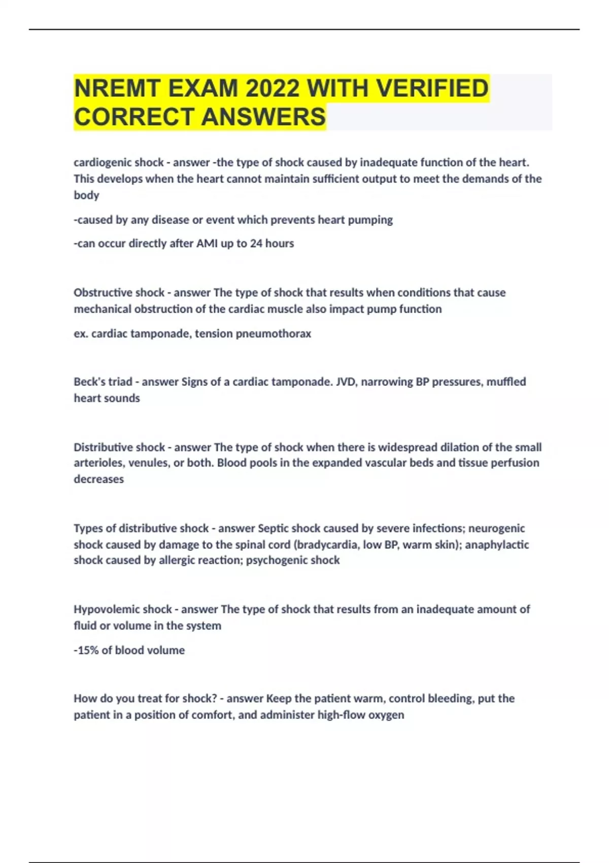 NREMT EXAM 2022 WITH VERIFIED CORRECT ANSWERS.