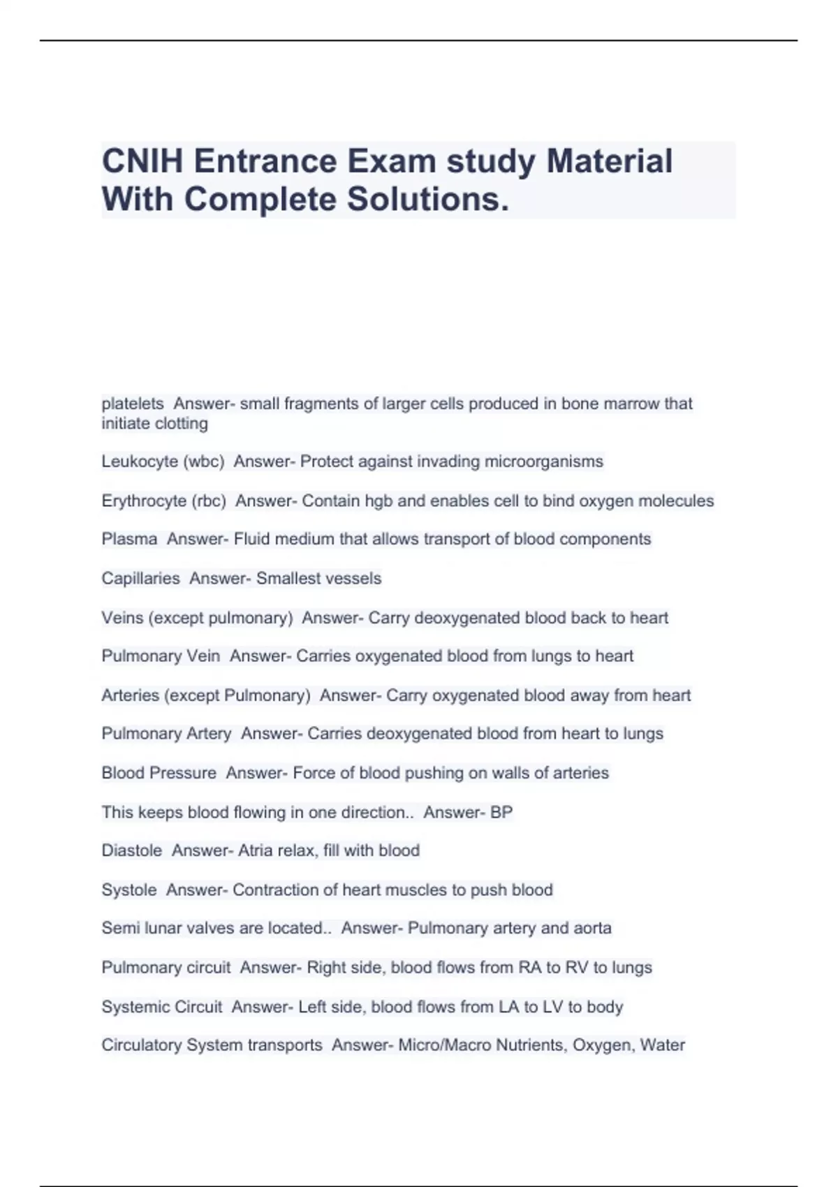 CNIH Entrance Exam study Material With Complete Solutions.