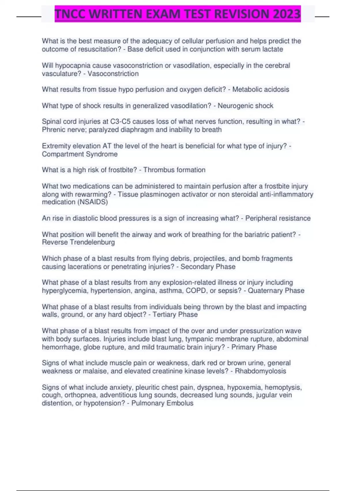 TNCC WRITTEN EXAM TEST REVISION 2023.