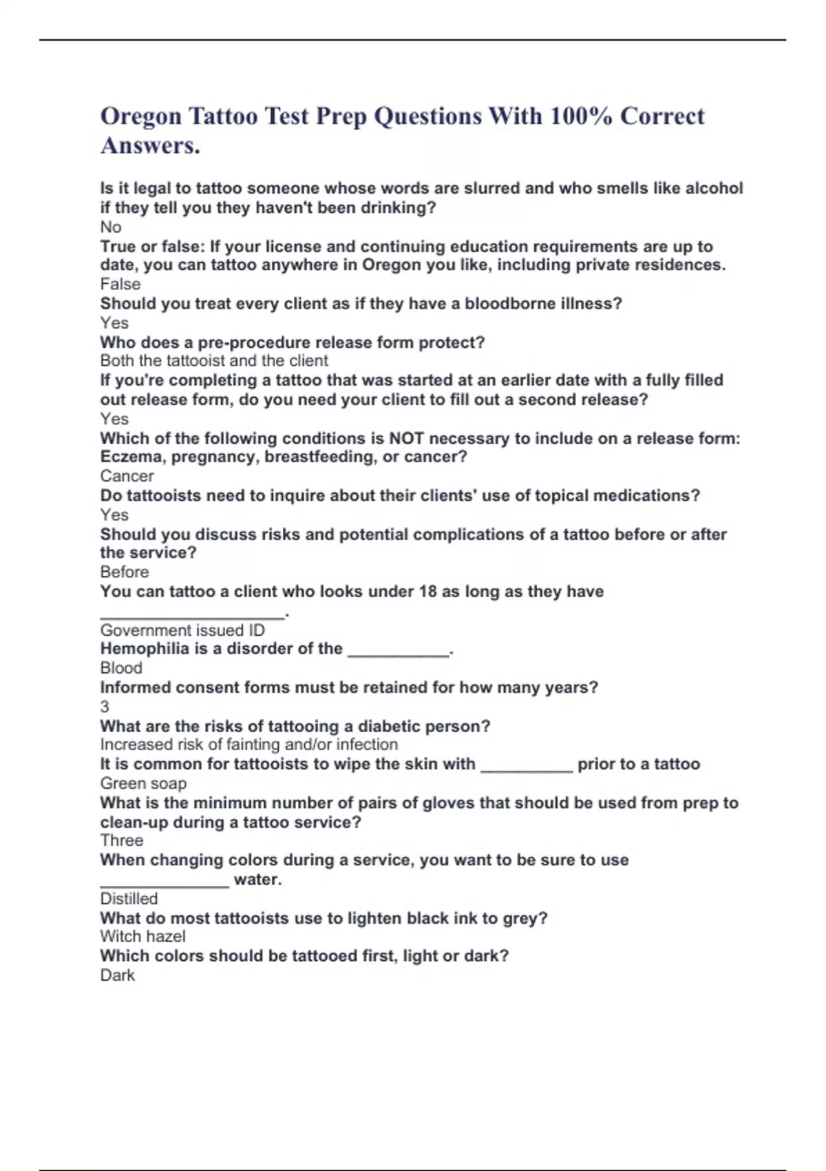 How often do tattoo artists have to take bloodborne pathogen training courses?