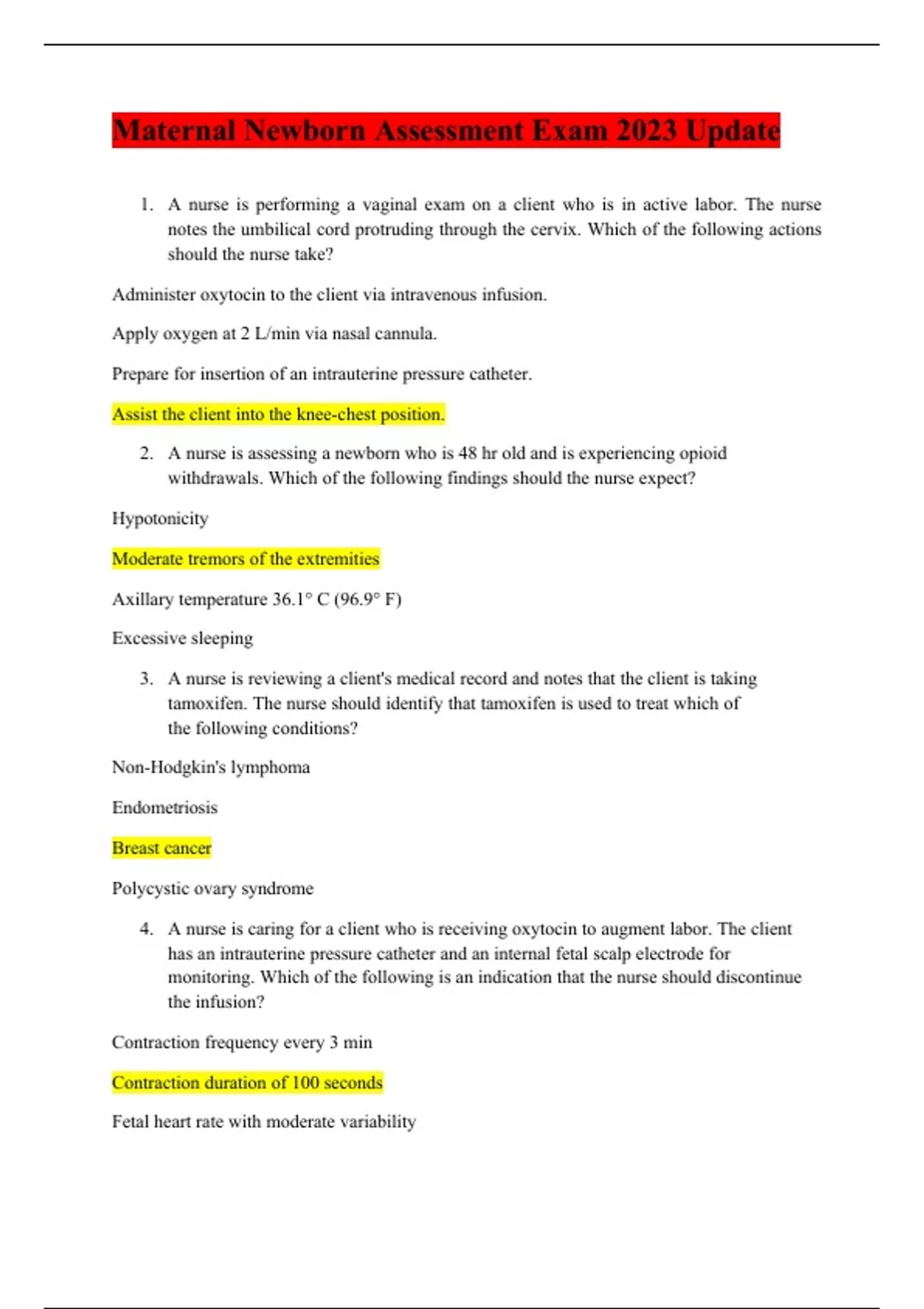 maternal newborn assessment exam 2023 update