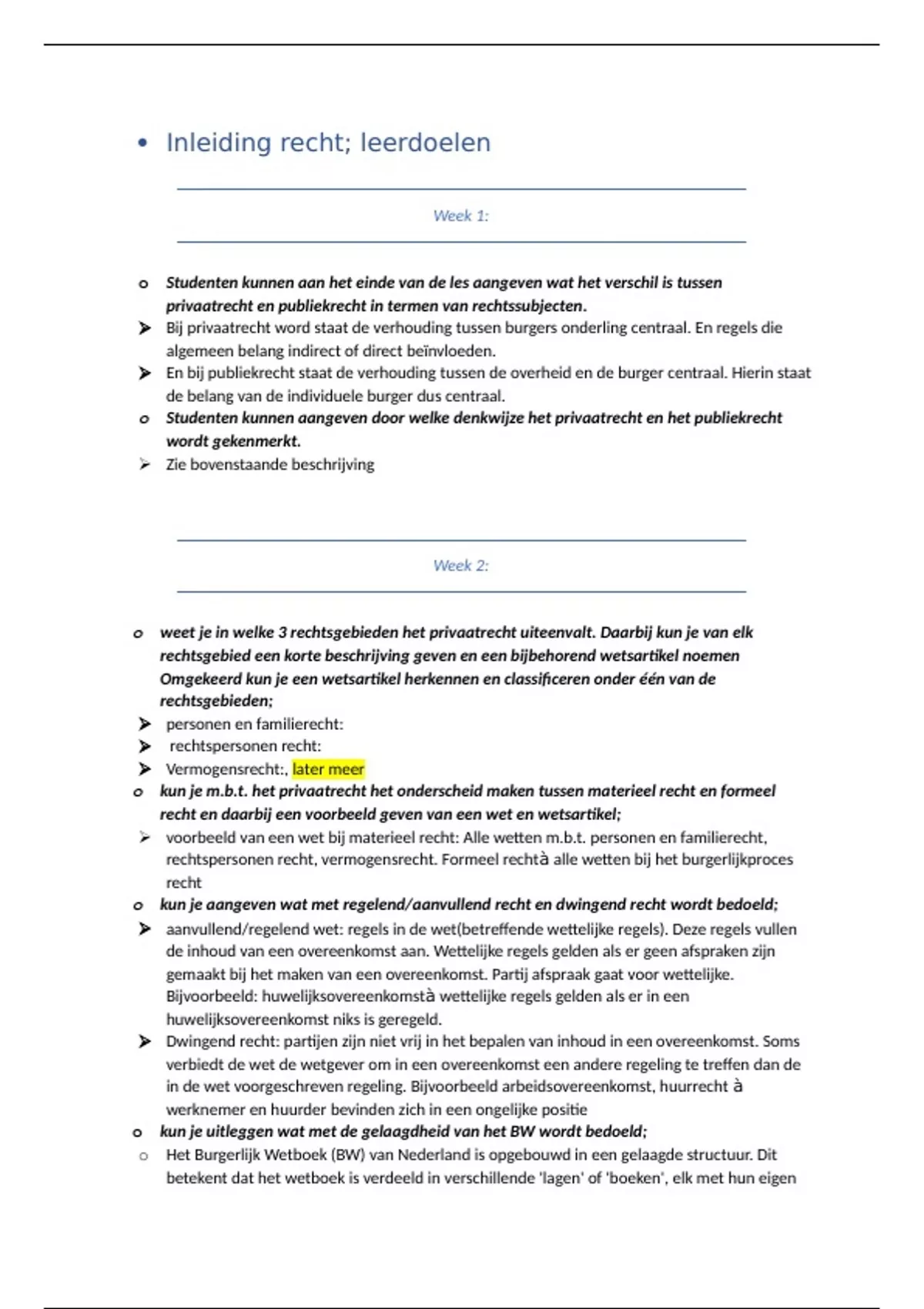 Uitgebreid document met alle uitwerkingen van leerdoelen voor de vakken jurist en recht, staat en recht en inleiding en recht. Ideaal ter voorbereiding op je tentamen/examen.