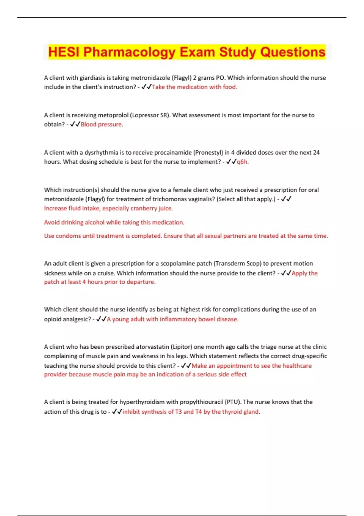 Bundle for HESI Pharmacology Exams Compilation | Verified | Guaranteed Success