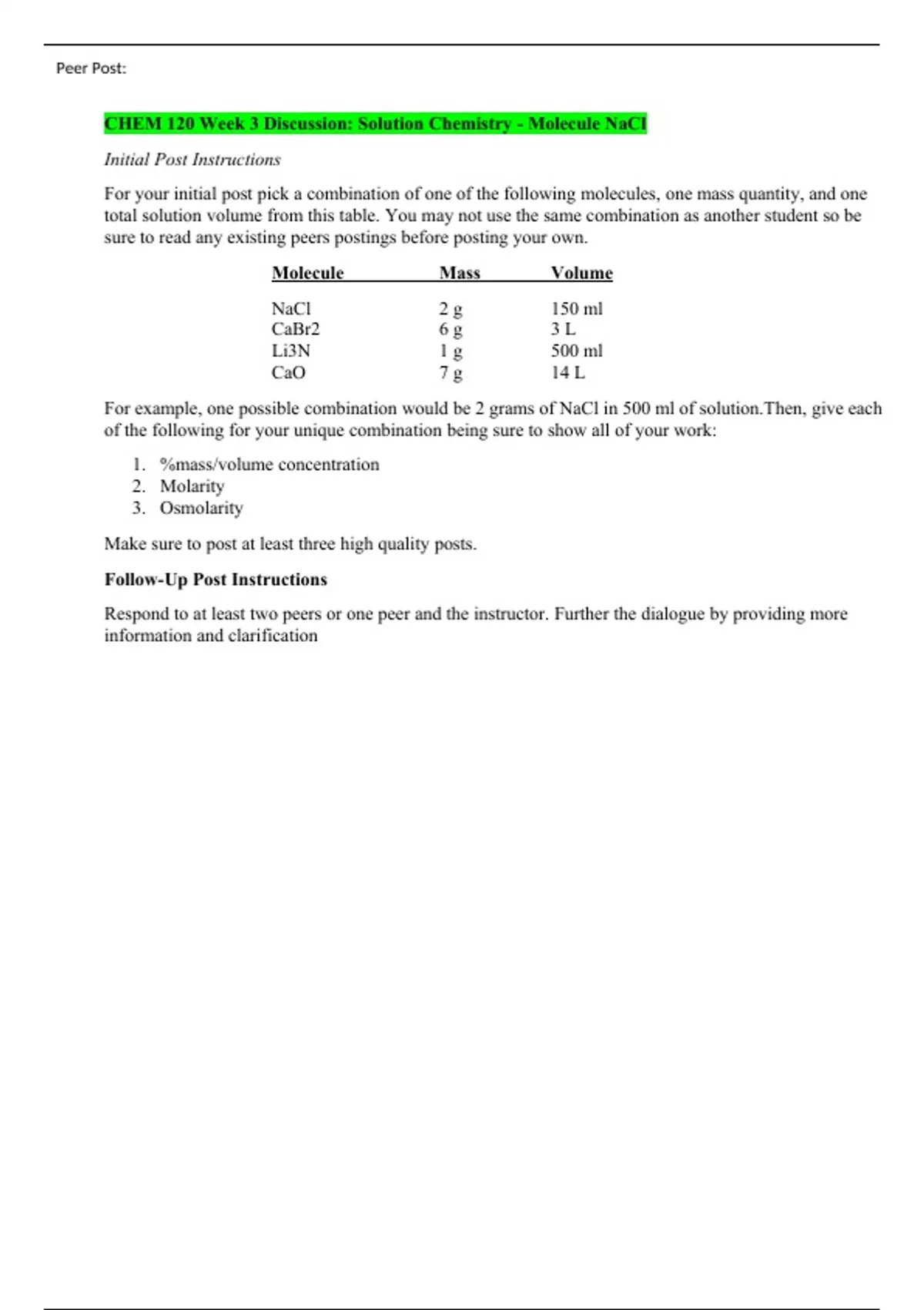 chem 120 week 3 discussion solution chemistry m