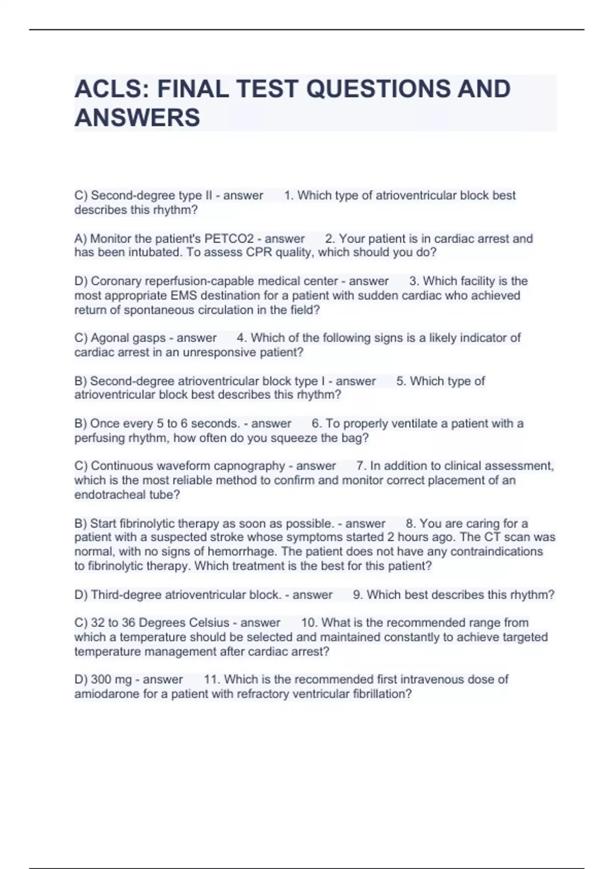 ACLS FINAL TEST QUESTIONS AND ANSWERS