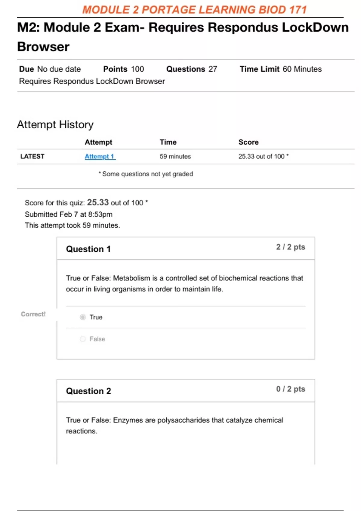 Portage Learning BIOD 171/Microbiology Module 2 Exam Questions and Answer Key