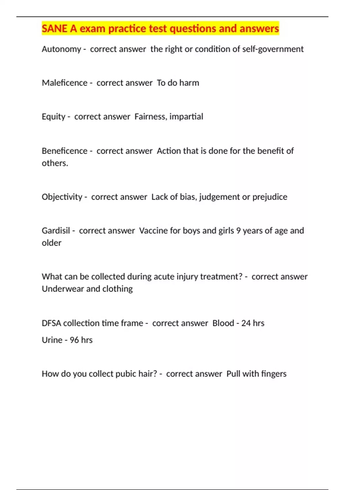 SANE A exam practice test questions and answers