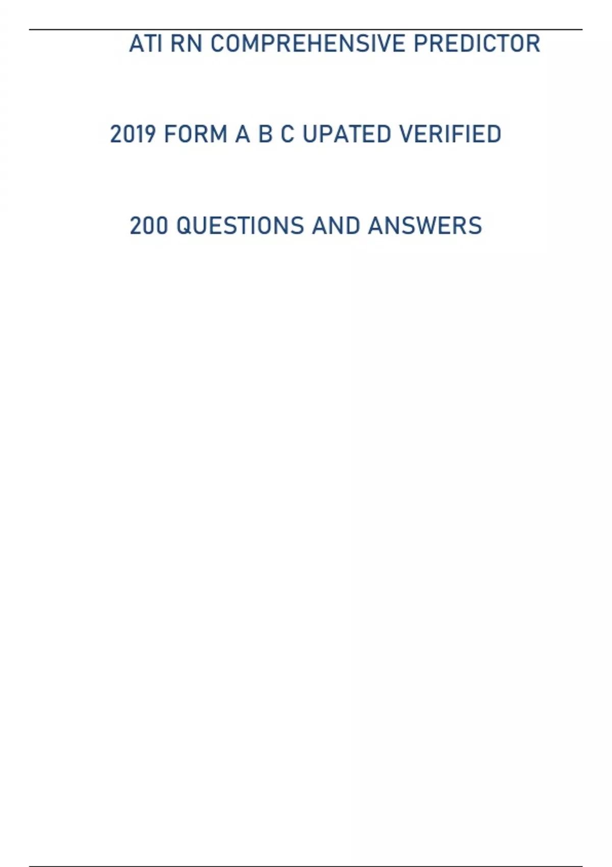 ATI RN COMPREHENSIVE PREDICTOR 2019 FORM A B C UPDATED VERIFIED QUESTIONS AND ANSWERS