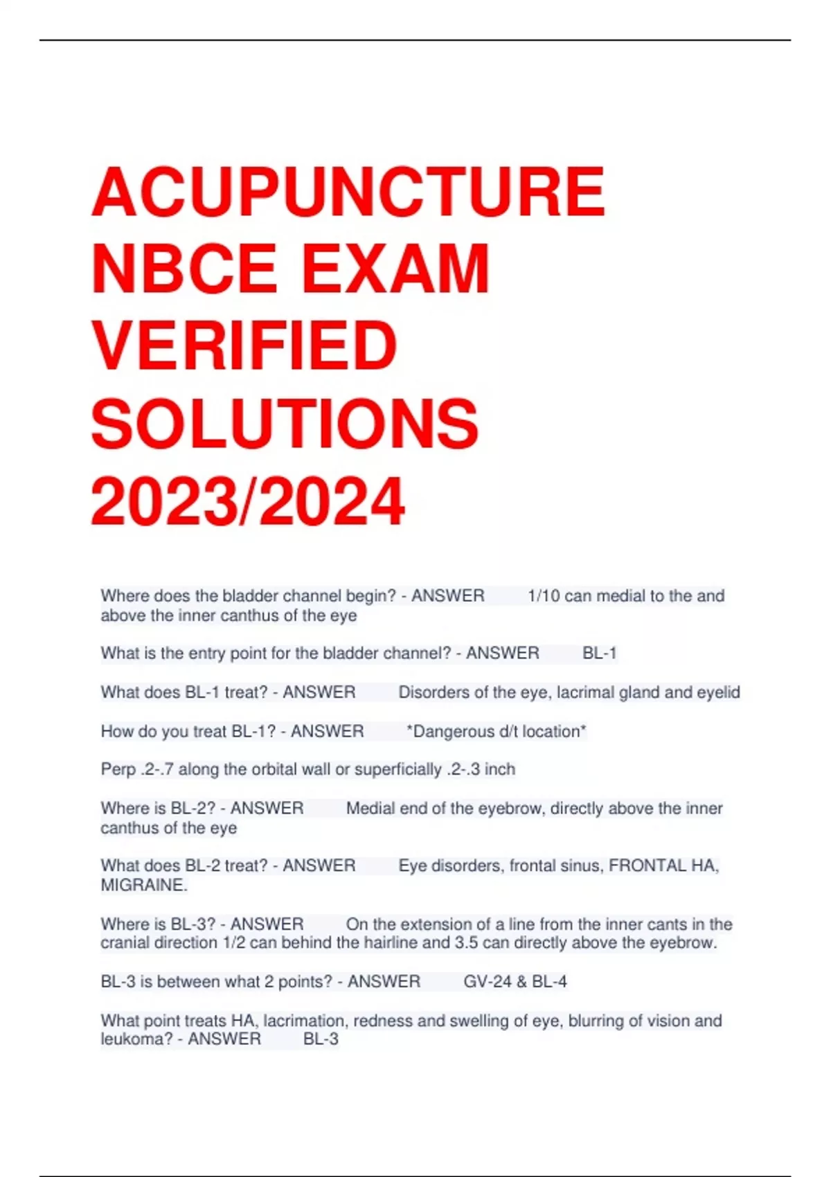 LATEST ACUPUNCTURE NBCE EXAM VERIFIED SOLUTIONS 2023/2024