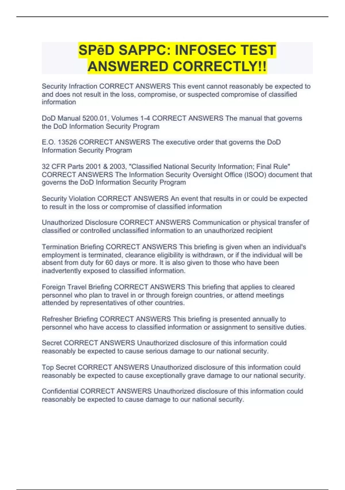 SPēD SAPPC: INFOSEC TEST ANSWERED CORRECTLY!!