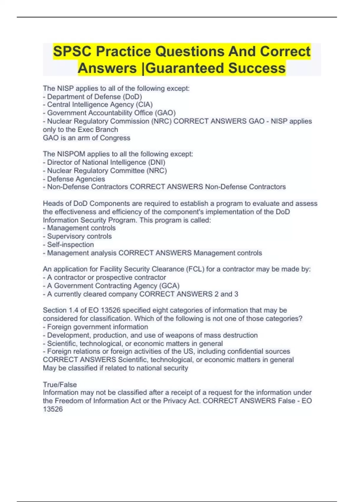 SPSC Practice Questions And Correct Answers |Guaranteed Success
