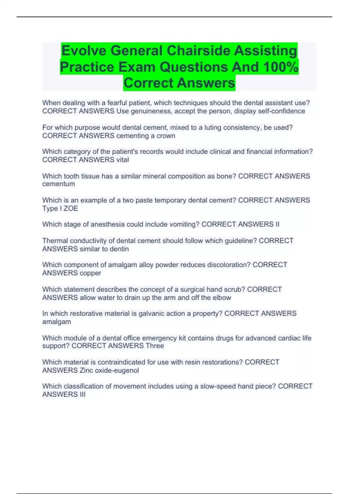 Evolve General Chairside Assisting Practice Exam Questions And 100% Correct Answers