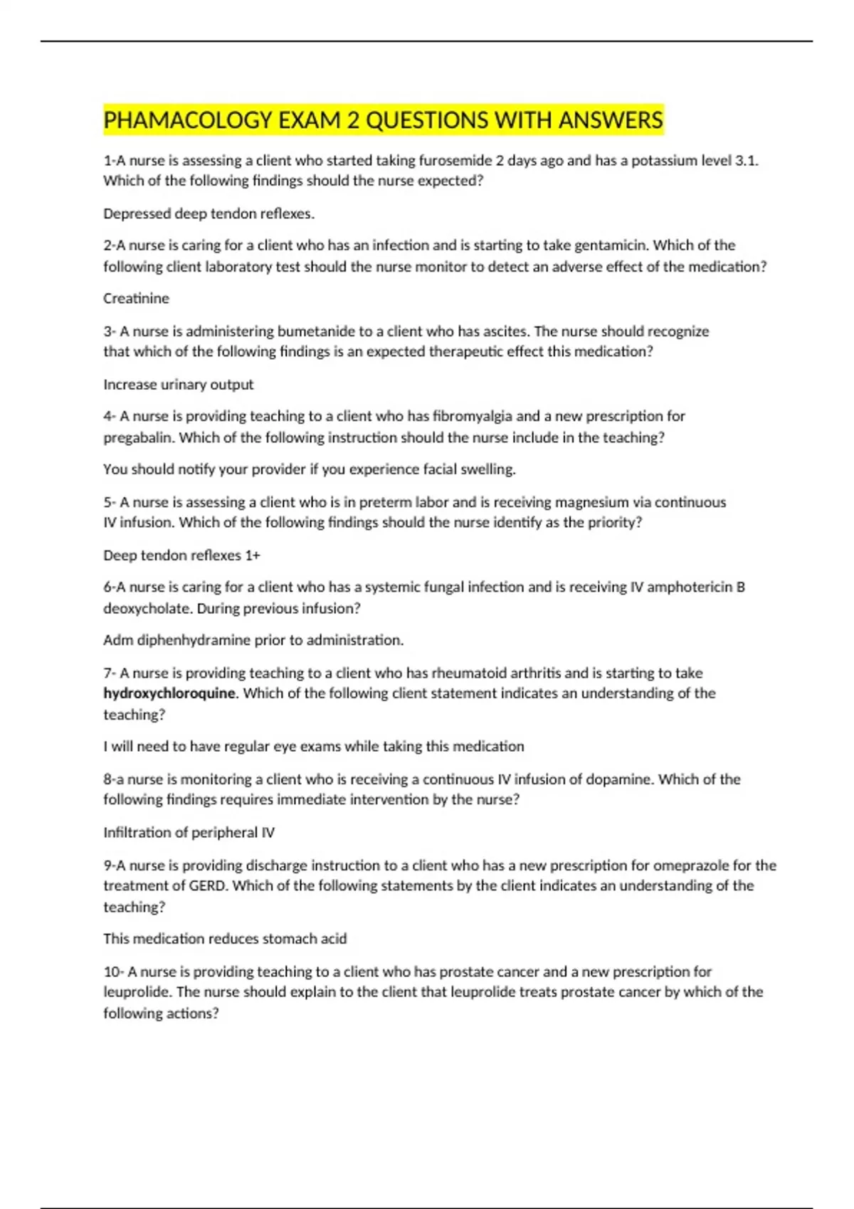 PHAMACOLOGY EXAM 2 QUESTIONS WITH ANSWERS
