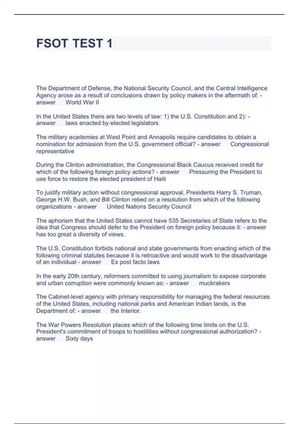 FSOT TEST 1 QUESTIONS AND ANSWERS FULLY SOLVED 2023