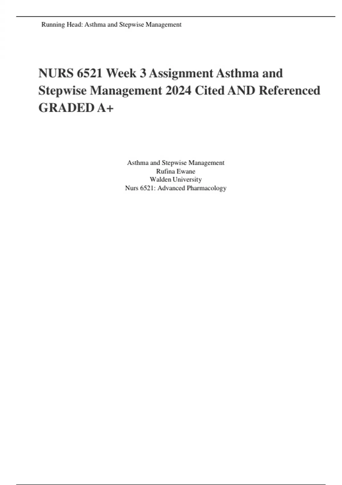 NURS 6521 Week 3 Assignment Asthma and Stepwise Management 2024 Cited AND Referenced GRADED A+