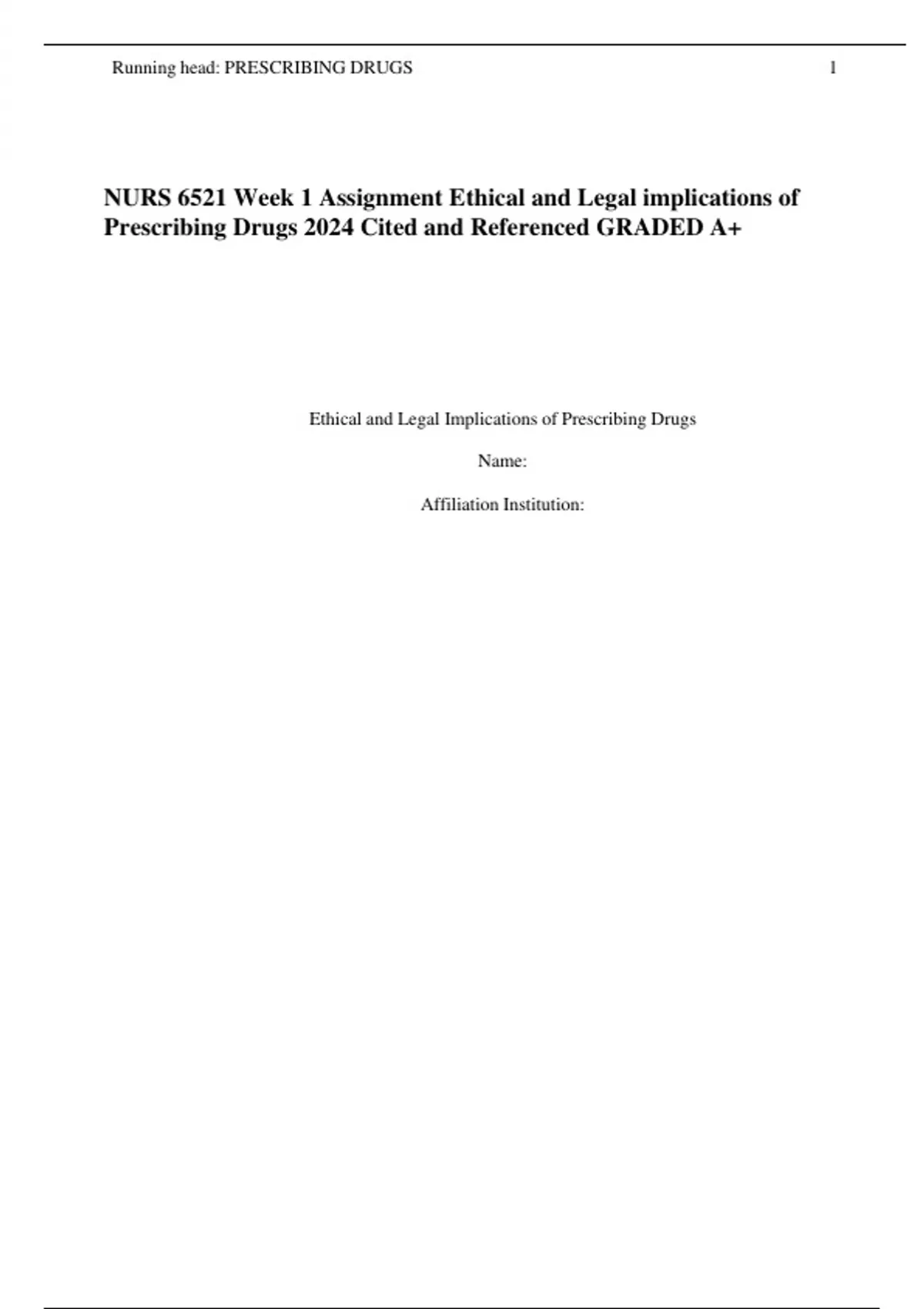 NURS 6521 Week 1 Assignment Ethical and Legal implications of Prescribing Drugs 2024 Cited and Referenced GRADED A+