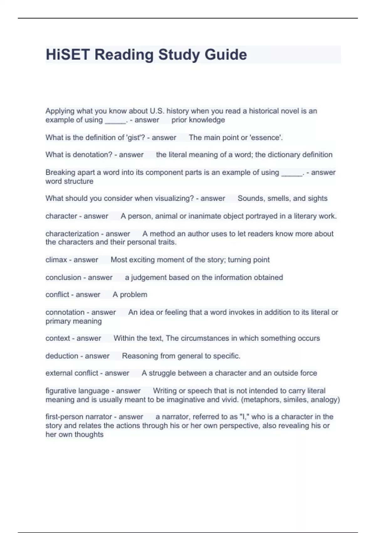 HiSET Reading Study Guide