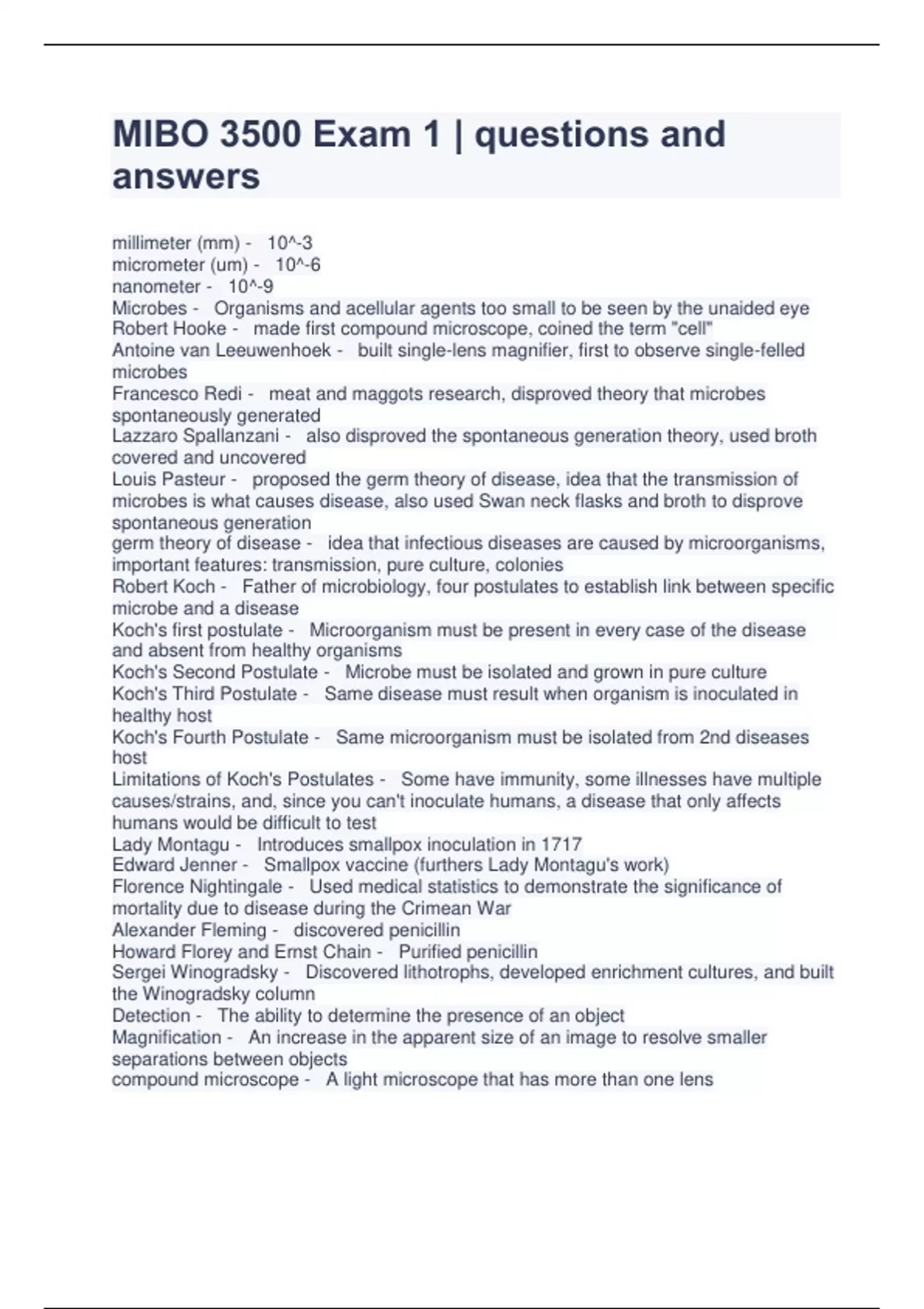 mibo 3500 exam 1 questions and answers