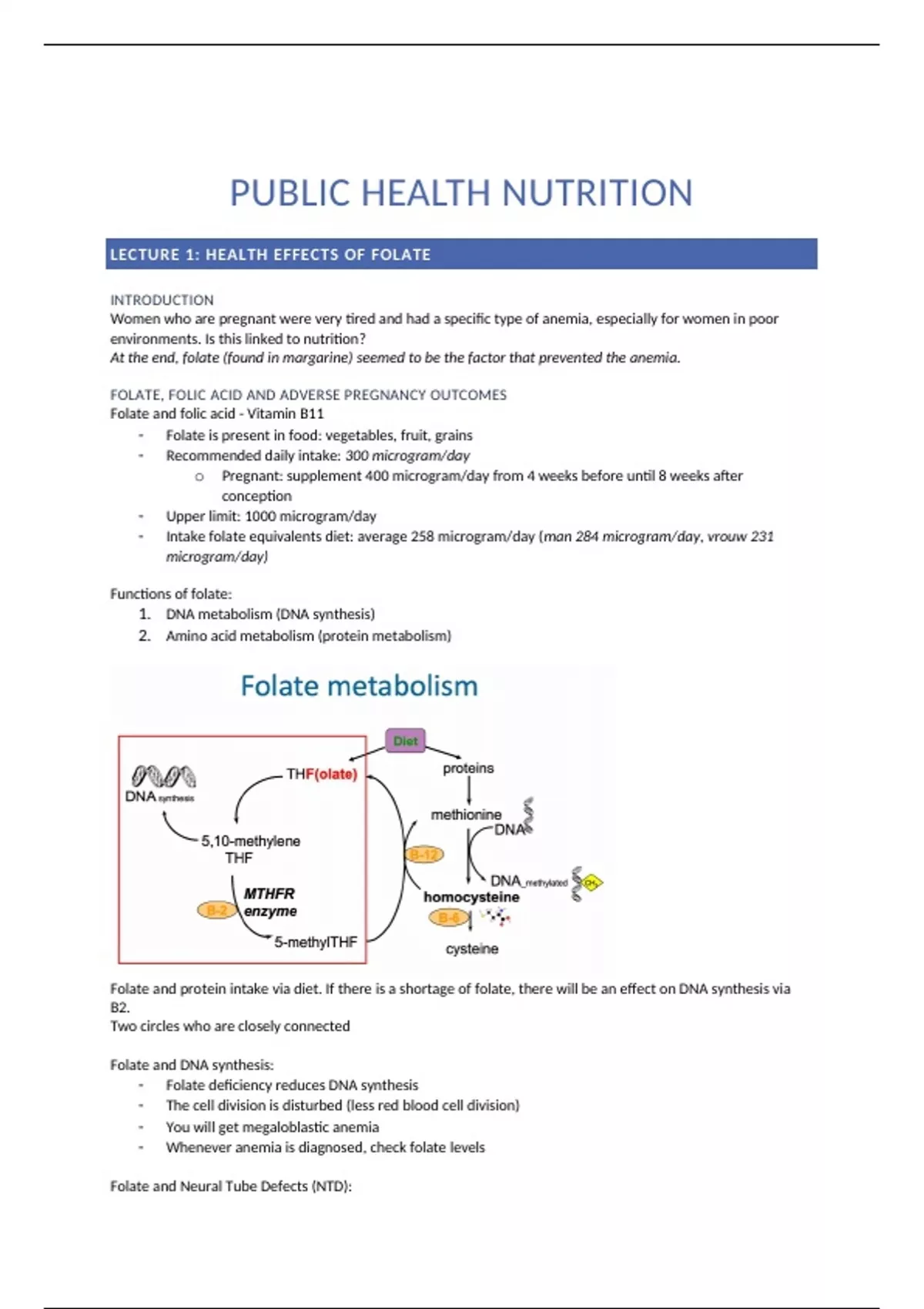 LECTURE 1: HEALTH EFFECTS OF FOLATE