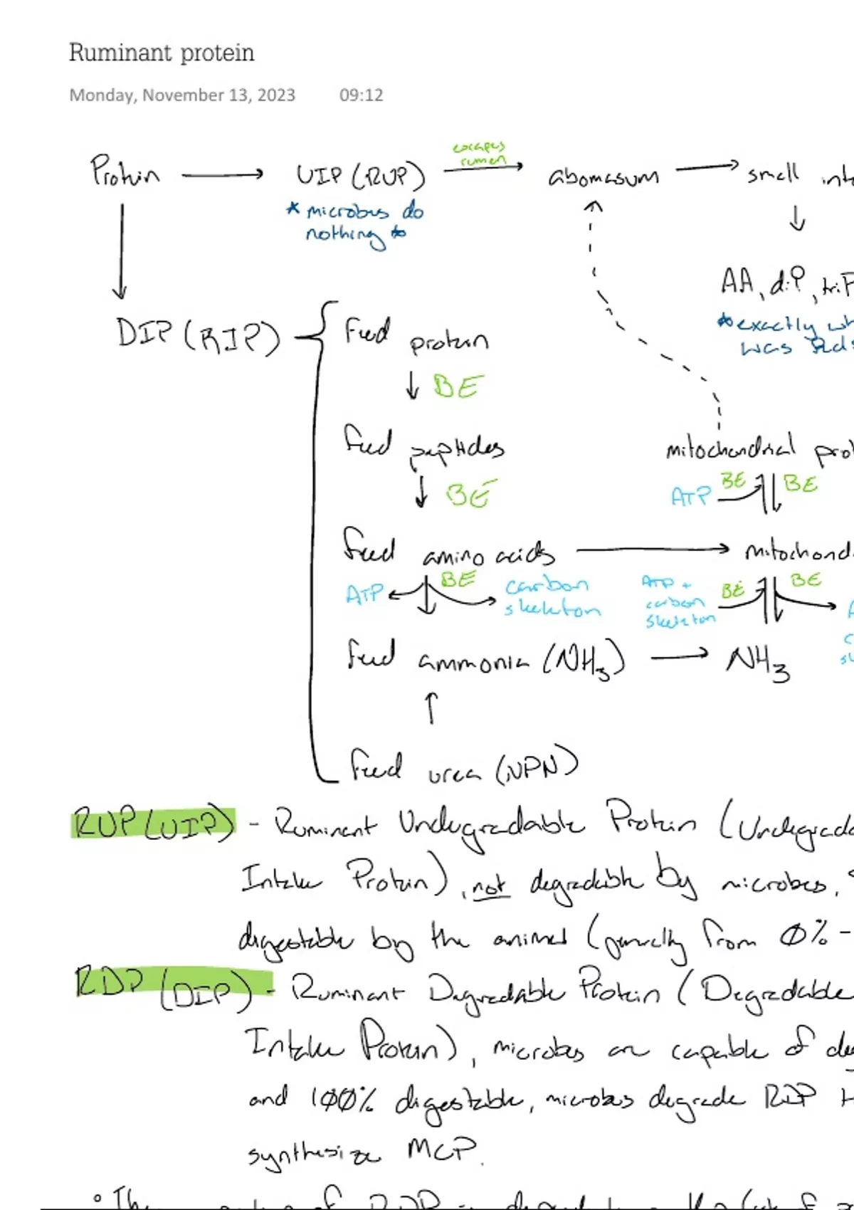 The digestion and breakdown of protein within the ruminal chamber and types, as well as flow chart and body pathway.