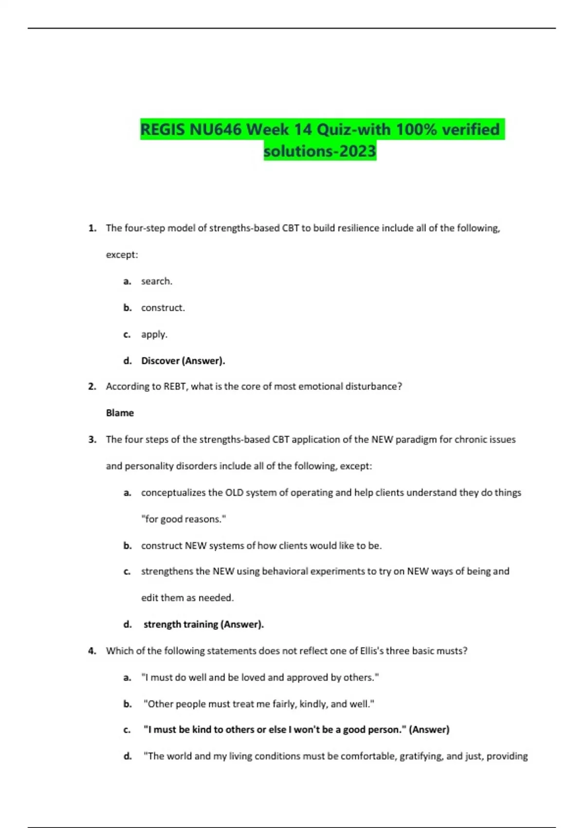 REGIS NU646 Week 14 Quiz-with 100% verified solutions-2023