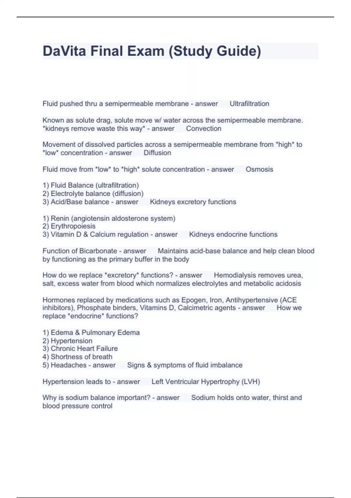 DaVita Final Exam (Study Guide)